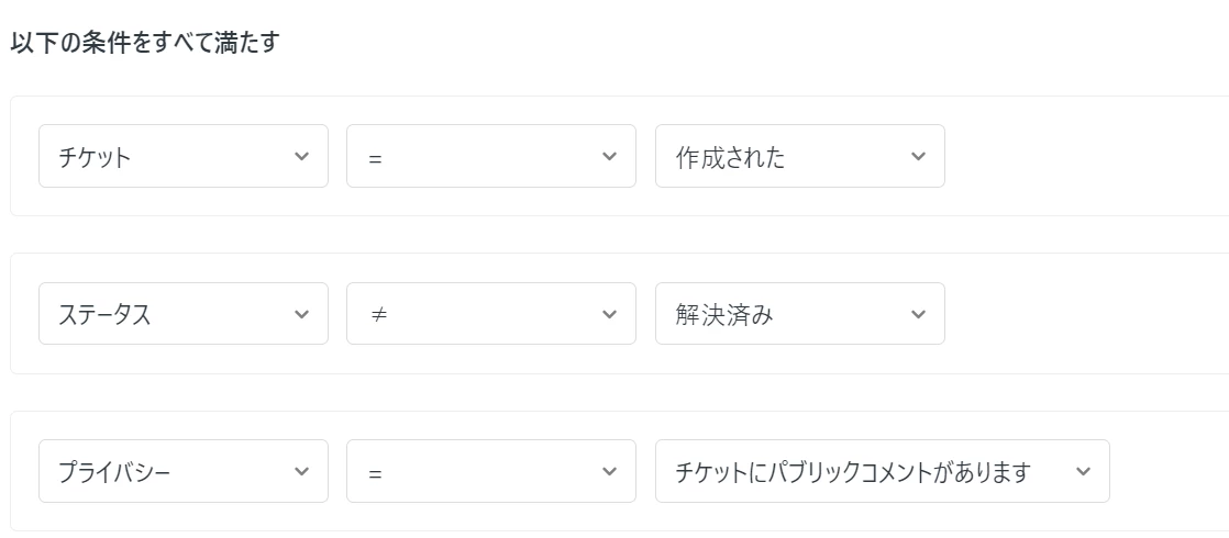 現在、チケットが新規作成された場合(カスタマーから問い合わせがあった場合)、問い合わせ受付の自動返信メールが送信されるようにデフォルト設定されています。