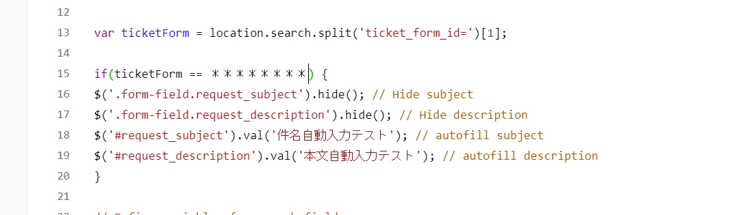 チケットフォームの必須項目を非表示にしたが、他の項目(必須フィールド)を空白で送信した場合、非表示項目が再表示され、【空白にできません】と出てしまう。