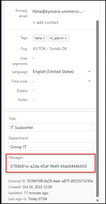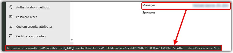 BUT the manger is shown as their Azure ID, not name or email.
