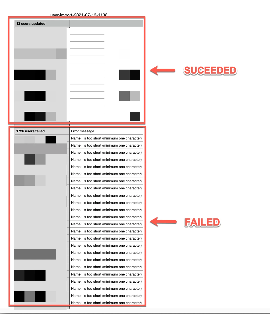 I am trying to bulk import a .csv (correctly formatted) which will update the email address to all of our internal Zendesk users. For some reason, it succeeds for the first 13 users and then it fails for all the rest with the error message "Name: is too short (minimum one character)".
