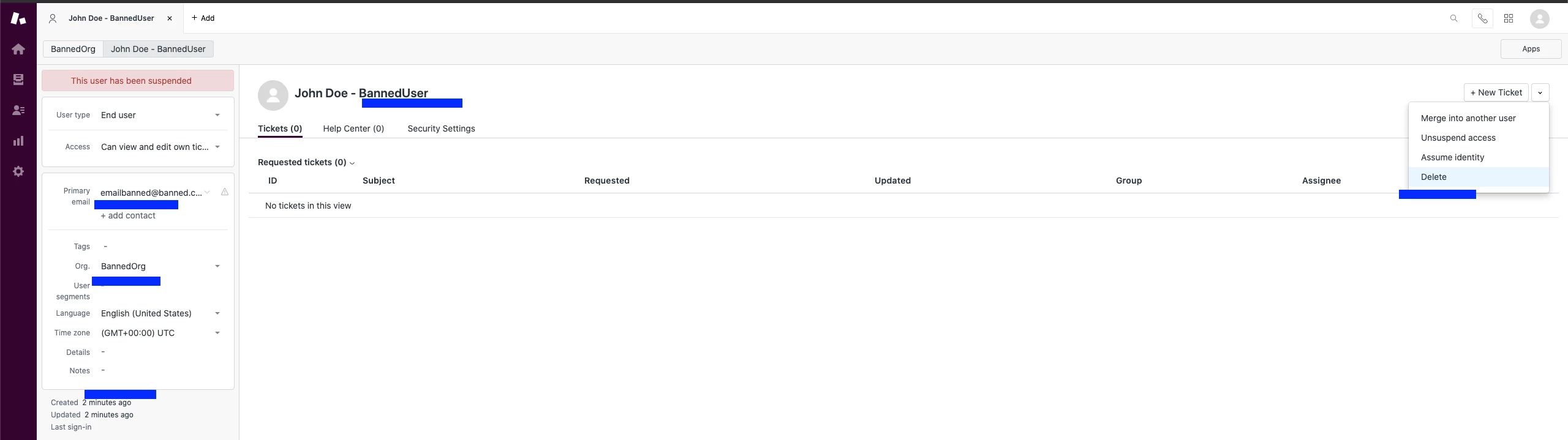 I have a user within a customer organization who has one incident logged against his account. He is no longer authorized to contact us for support and I need a way to prevent any further emails or incidents from being created and associated with him. I have marked his account Suspended but that does not prevent tickets from being created and emails from being sent to him, nor does it indicate that to my agents from the user list.