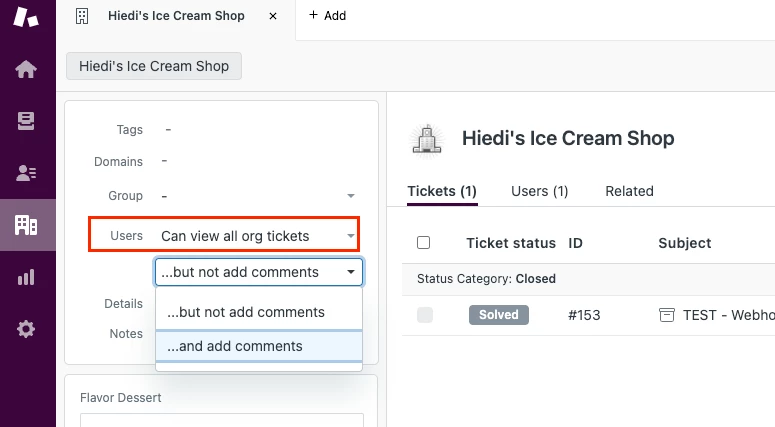 Is there a way for a user admin to see all the tickets their company team members put in so they can monitor ticket statuses? If I am the manager of 4 people that are in charge of putting in support tickets for my company, can I as the manager see all of those in a dashboard? Could this possibly be grouped by email domain?