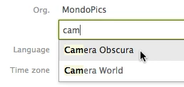when a user is associated with multiple organizations you cannot then go into the subsequent Organization field and start typing to find the Organization from that list, you have to expand that list and scroll or arrow down...