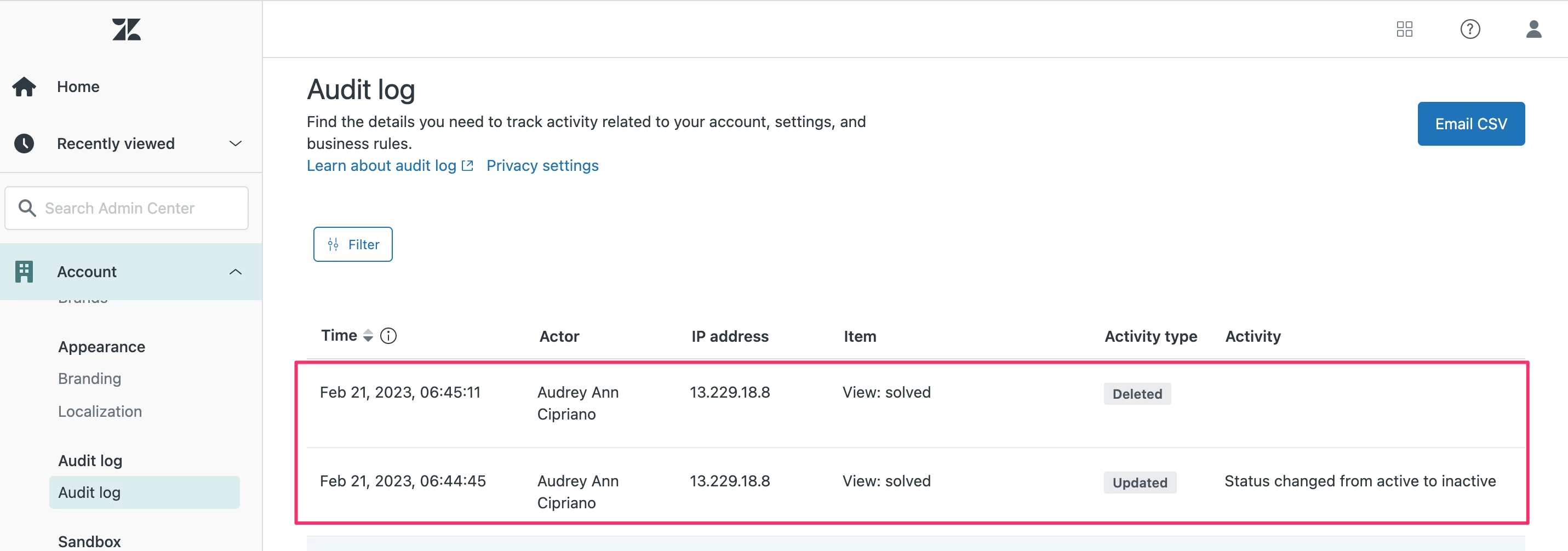 Hi! Someone from the org deleted my views, just checking if it's possible to see who did it and if I can still restore those views.