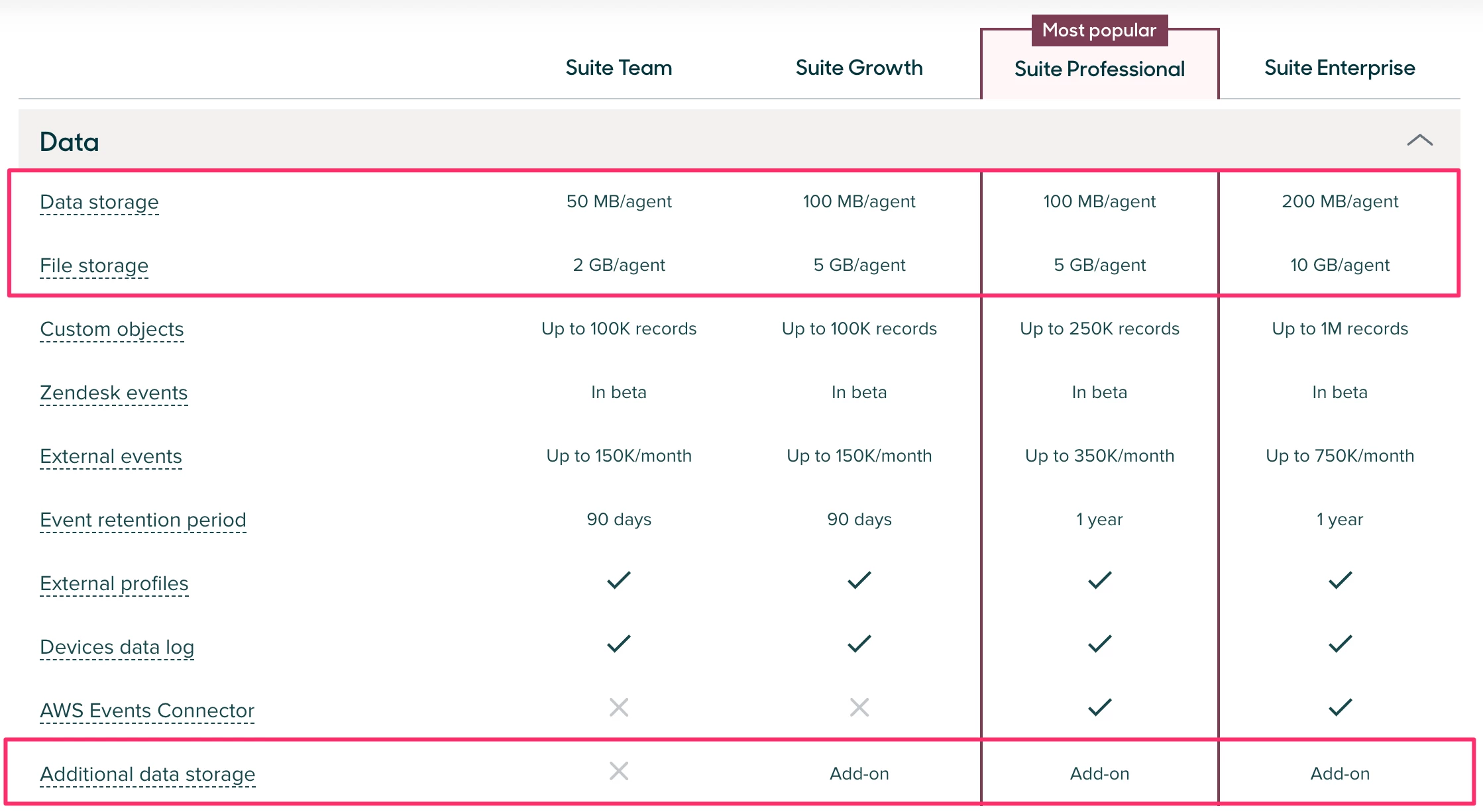 Zendesk Storage Plans