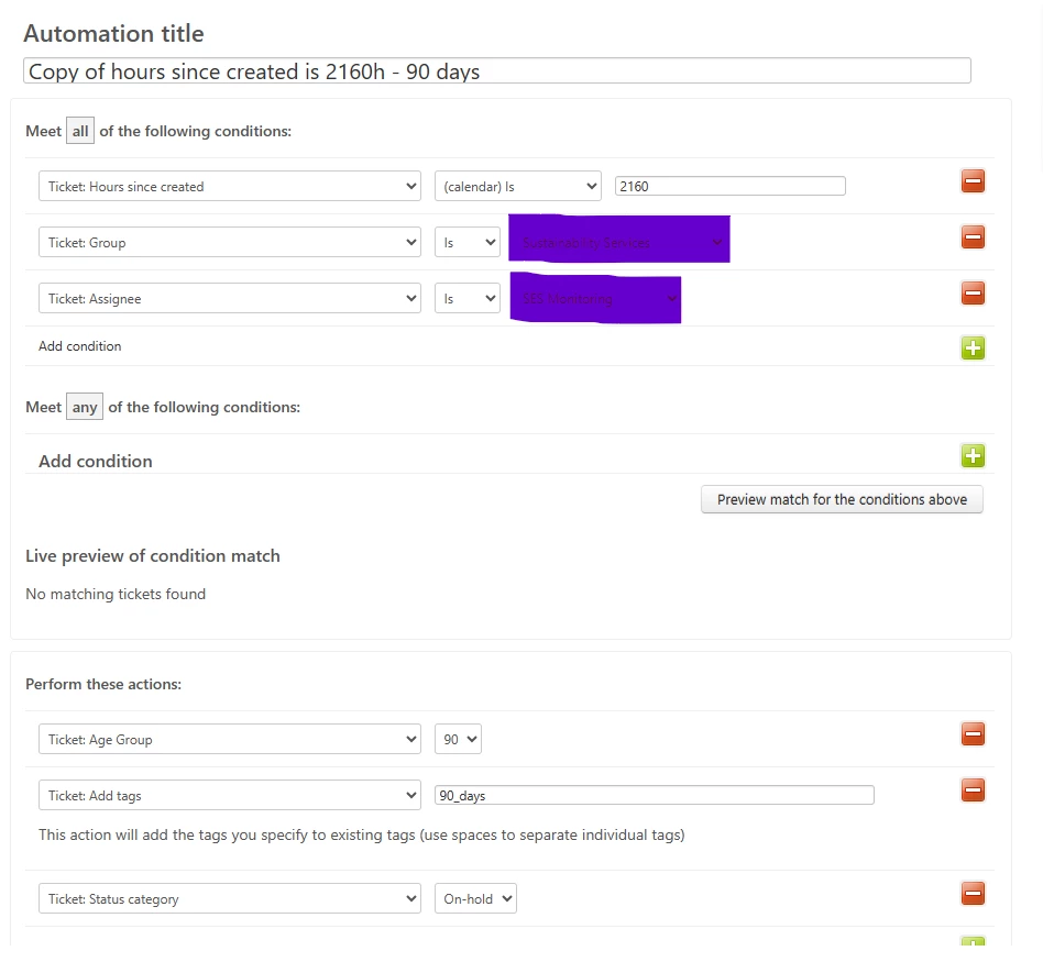 I need help creating an automation. Many of my tickets don't receive a response in time and its bulking my pending inbox folder; and I would like to put them ON HOLD after 90 days have passed so I can differentiate from the rest of tickets. This should be based from the date it was first created. Can this be done?