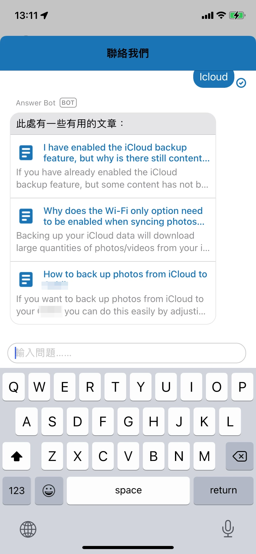 But I try to add answer bot in iOS app, and input the same keyword, it only show English articles.