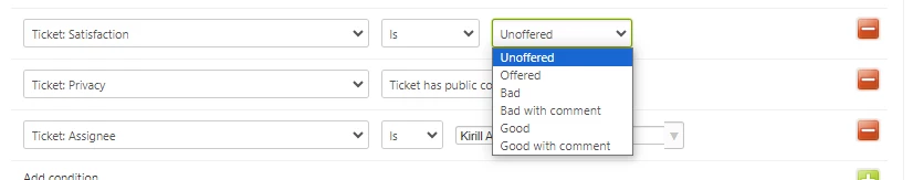 It seems you're working on an automation. Yes, the Satisfaction value was indeed met as the ticket received a good rating along with comments. However, I'd like to confirm that all other conditions have been satisfied. Additionally, just a reminder that this automation operates on a time-based schedule, running once every hour. Please ensure that the conditions align and the automation will trigger an hour from the last update.