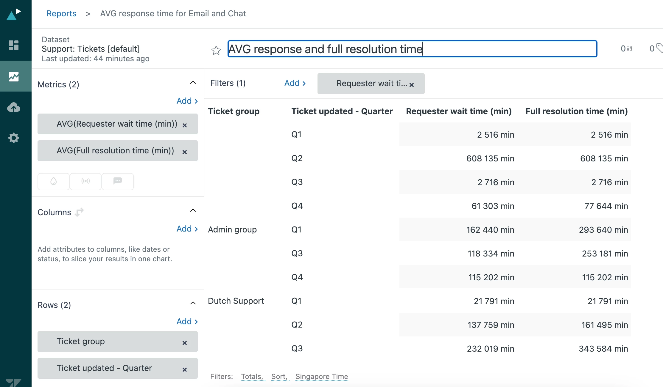 I want to be able to report on the average response and resolution times within a time period for one user group. Is that possible?
