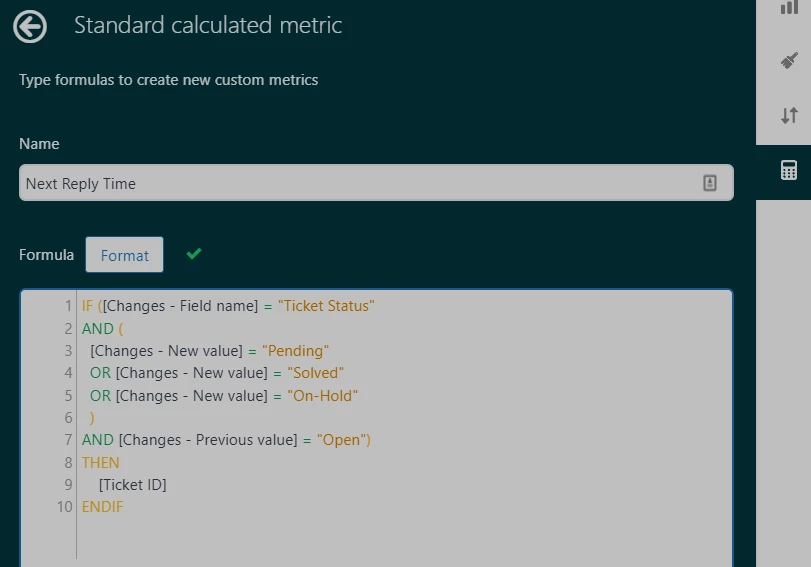 That's right. There's no function or any native options within Explore that could exactly pull up the date or timestamp of agent reply that came after the first response. But, the workaround that you have in mind – events where the status was changed from open to pending – might be a possible solution. In your workflow, are first agent responses sent out when the ticket is in the New status? This way, the first reply can be distinguished from the subsequent replies when the status is changed from Open to Pending. Under the Ticket updates dataset, you can create a custom attribute to get the timestamp of the first reply by using the earliest date function for agent public comment. This technically should be the first reply timestamp. You can then calculate the duration from ticket creation to first reply (from the custom date attribute) using DATE_DIFF. This will the First reply time in your Ticket updates dataset.