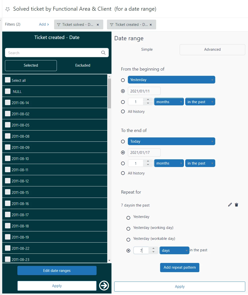 While the Week filters start on Monday, when I select the default "Last Week" It looks to be starting on Sun and ending on Saturday and is not able to be editted to Mon-Sun.