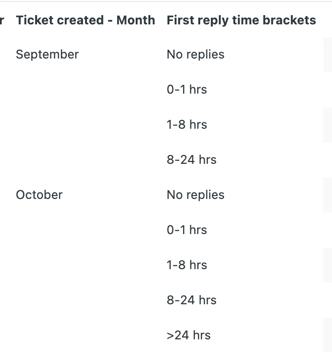 As the result, report will show bracket for FRT in 1 month as below example: