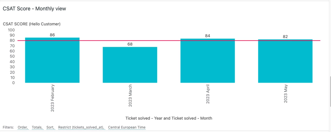 I created a CSAT Score: Monthly View Report in Jan 2023 because we wanted to see the CSAT score for each month since Jan.