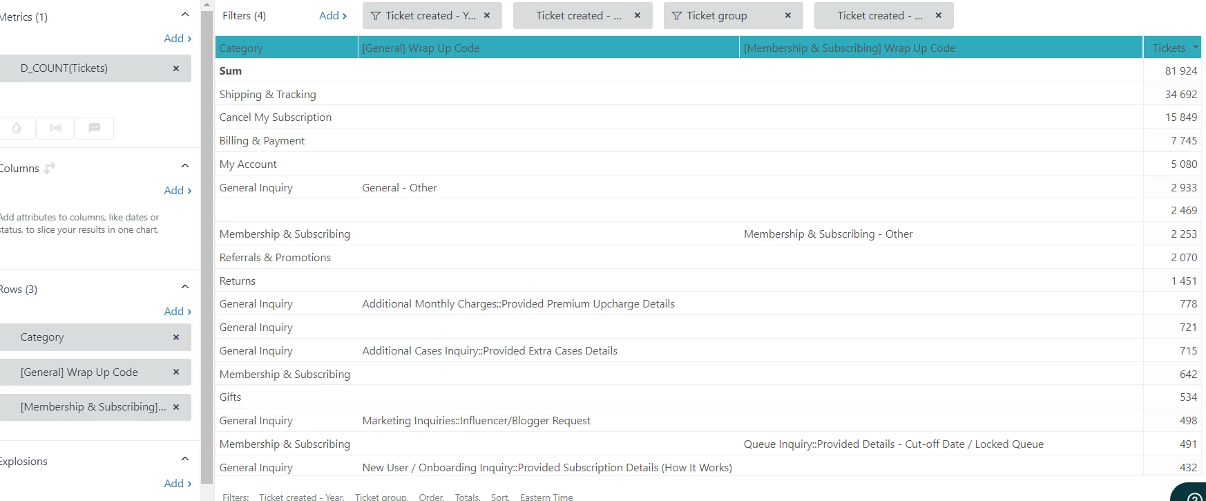 I have a drop down menu for custom fields that agents are suppose to select for each ticket. I would like to report out these fields but when I add the attributes for each it get separted into column for each attribute which I don't want. Ideally, I would like field value in 2nd column with their category in 1st column.