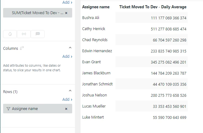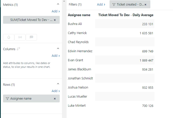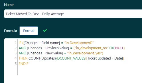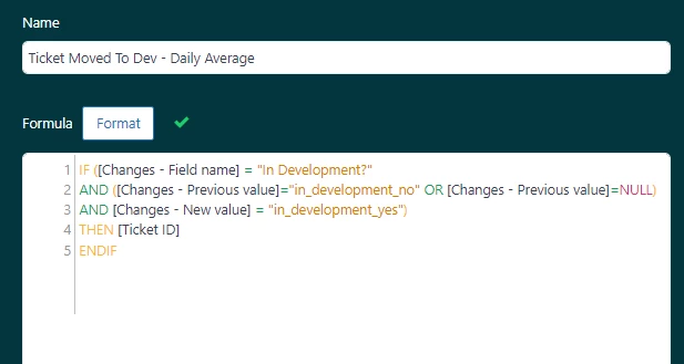 Unfortunately, the metric is only showing 0, even though I know for a fact, that there are tickets with exactly that change. Where did I go wrong?