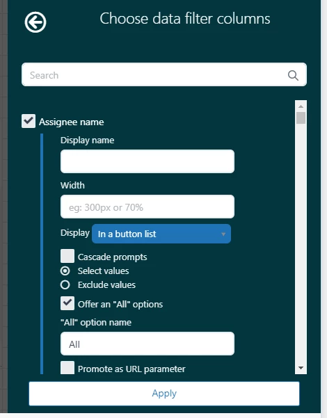 I am trying to get a Data Filter in Dashboard for Assignee.