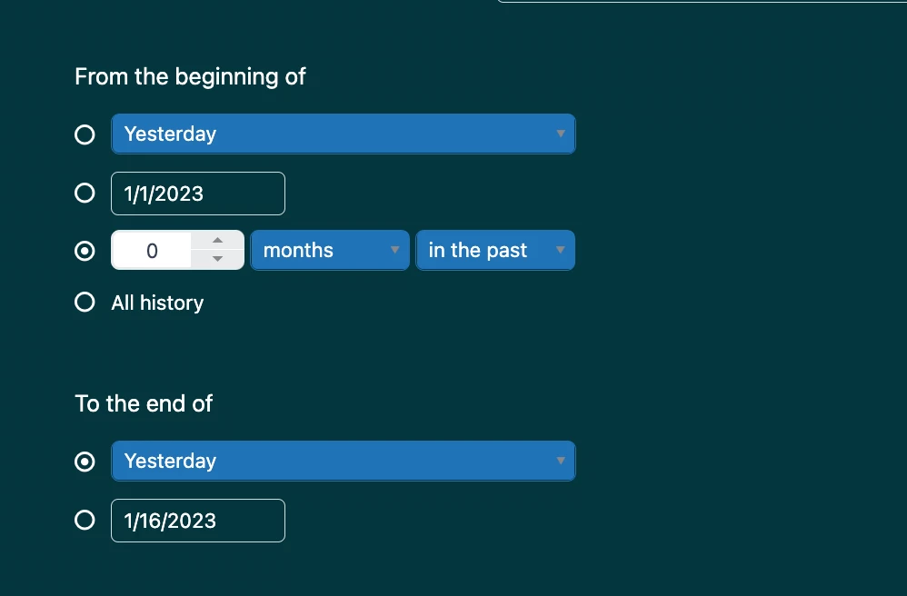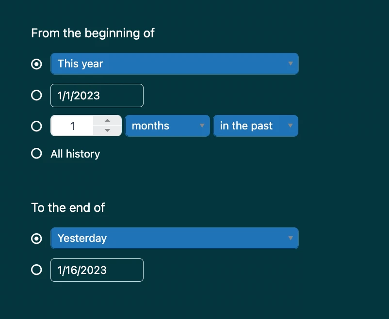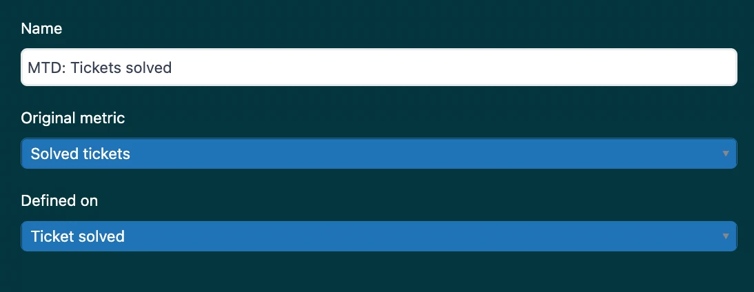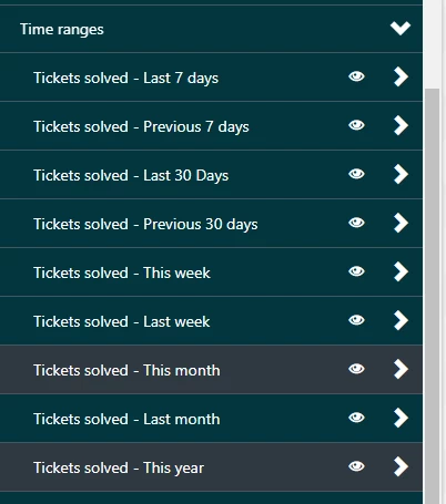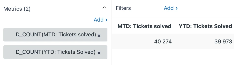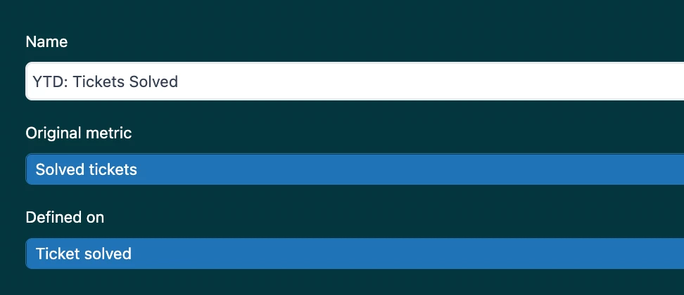I have created two ‘date range calculated metrics’ to report on tickets solved, beginning of the month till the end of yesterday and beginning of the year till the end of yesterday.