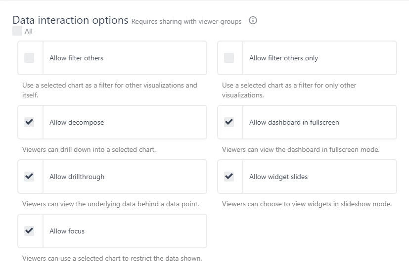 I'd like to enable drill through on a widget, but the option doesn't appear when i click/hover over any of the bars. I've enabled drillthrough on the query and the dashboard as suggested in your KB articles.