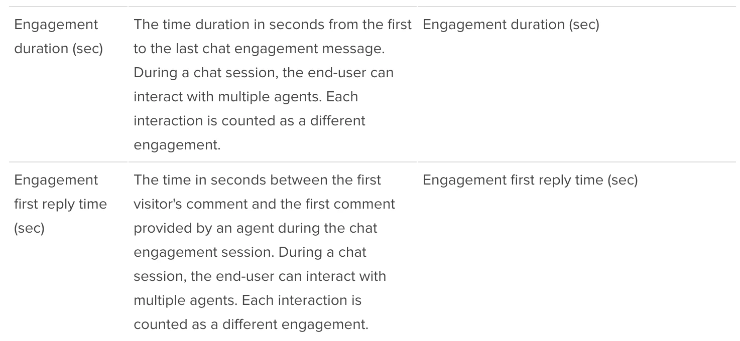 - Chat average handle time per agent (but I only want the duration from once the agent has accepted the assignment to the end of the chat)