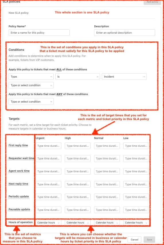 Which is the difference between a policy and a target? At first I understood a policy is made of targets (which in turn are made of a metric and a target value for each priority level), but the standard Zendesk Support dashboard doesn't seem to follow this rule.