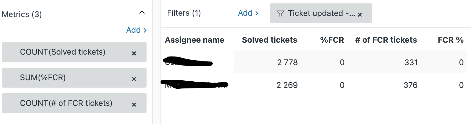 FCR % - I need to find a way to capture % Full Resolution Time < 2 hrs of tickets solved