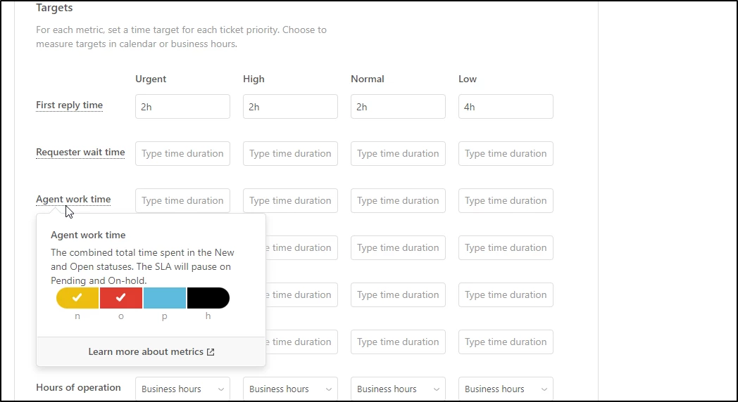 In order for Agent Work time to appear in your SLA metric you'll need to set it up first on your SLA policy.