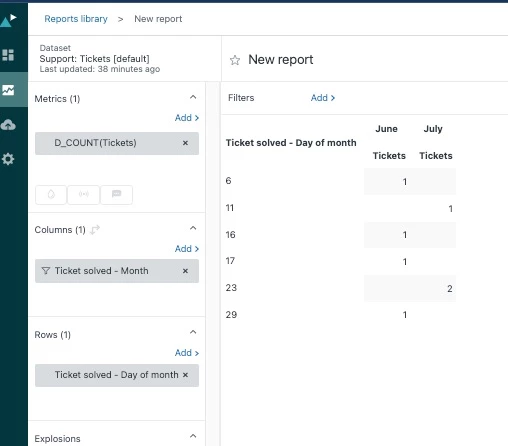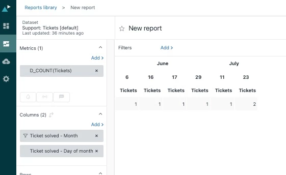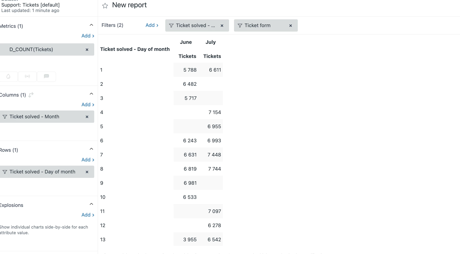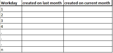 I need to create a report that compares the tickets created on the last month versus the tickets on the current month by working day. My report should me something like this: