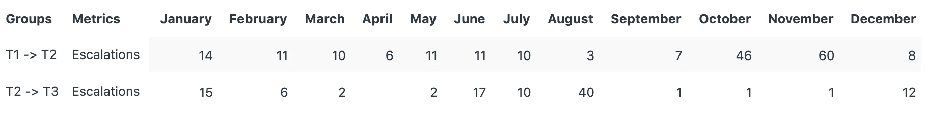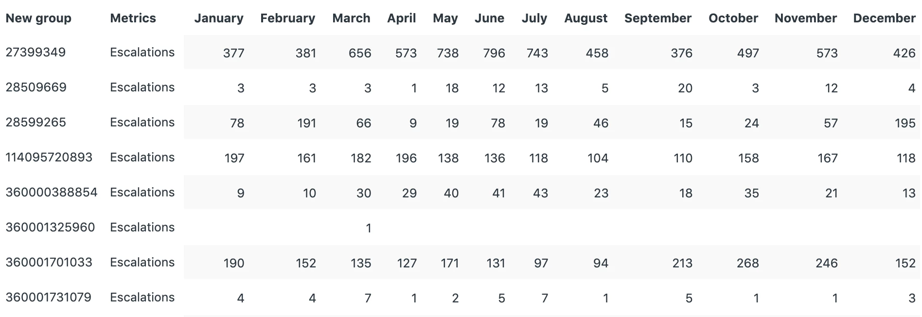 I've been trying to create a report showing how many tickets have been escalated from Tier 2 to Tier 3 with no luck. So far I've tried by creating a custom metric as well as using the Group Reassignment metic but they are either not working or given me the wrong results. I'm using the Ticket Updates dataset.