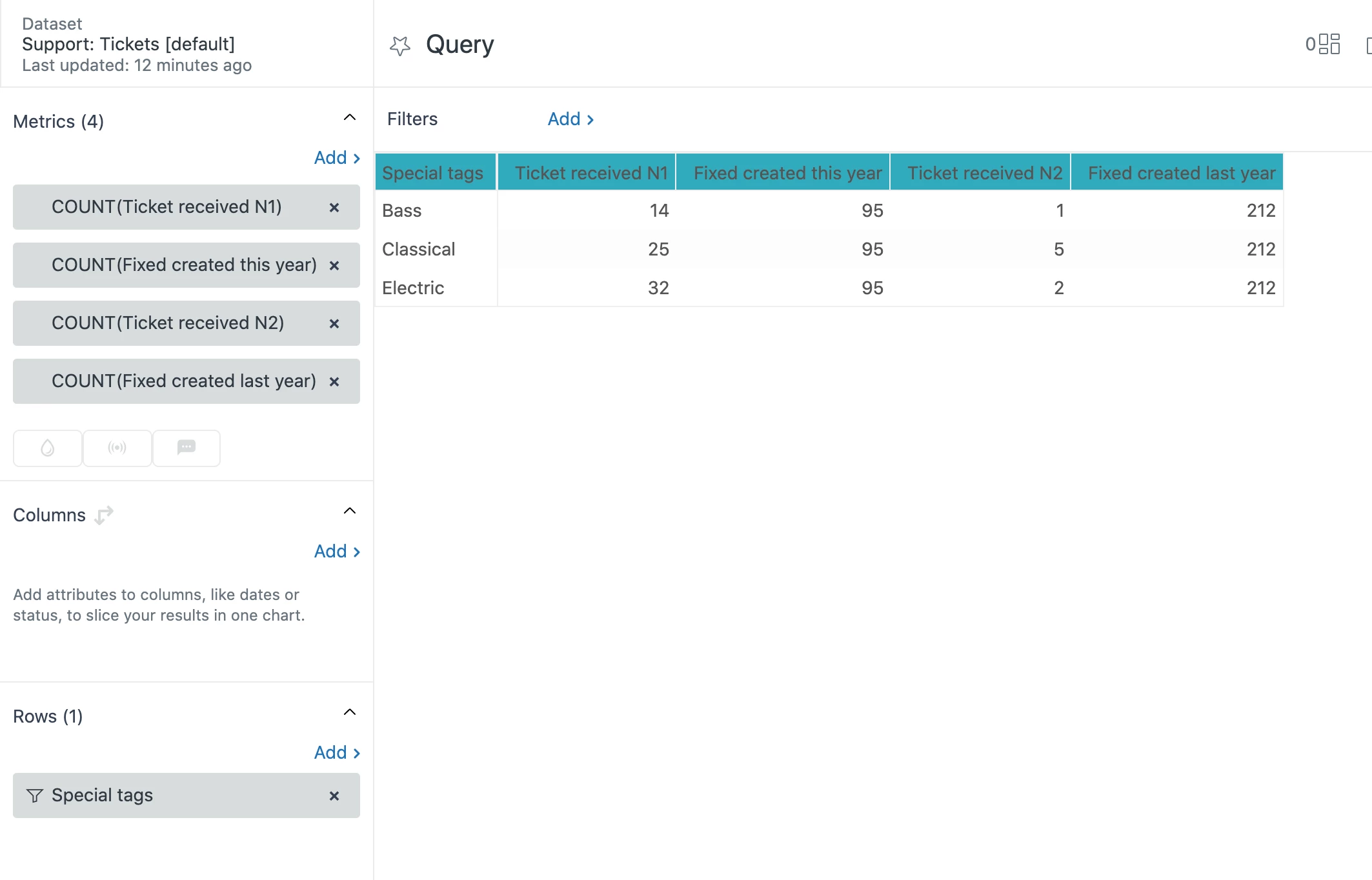 2. The distribution of those tickets by tags;