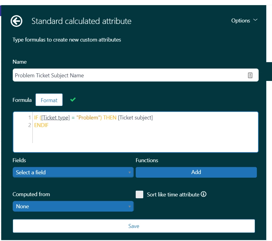 IF ([Ticket type - Unsorted] = "Problem") THEN [Ticket subject]