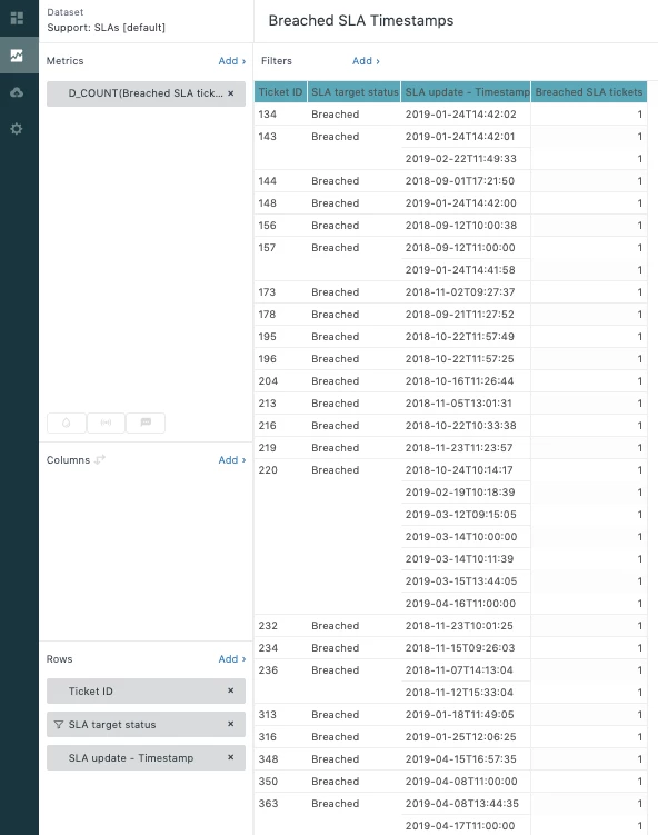 I'm trying to build a report that lists SLA breaches with the ticket ID and the date/time of the breach. I'm not seeing a metric that shows the date/time of the breach though. Has anyone built something like this?