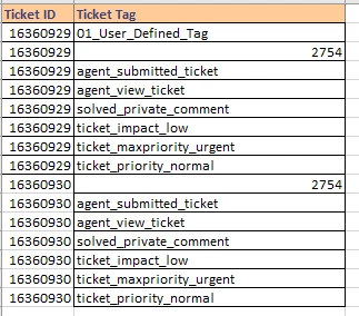 I tried filtering out the Ticket tag and doing check only for the user defined tags, but that way i miss the Tickets that dose not have user tags. Can anyone help on how to achieve this through explore and functions.