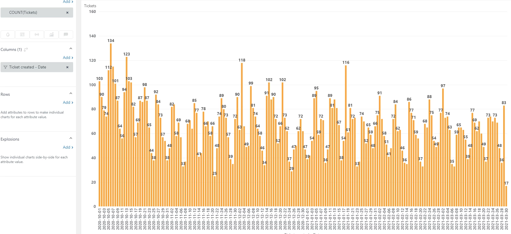 I'm hoping someone could advise whether or not it's possible to see in a query running(or rolling) average of tickets created in the past 7 days for example.