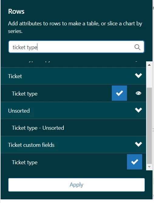 Here is what my report looks like. Note that "Ticket type" is showing as "Incident"