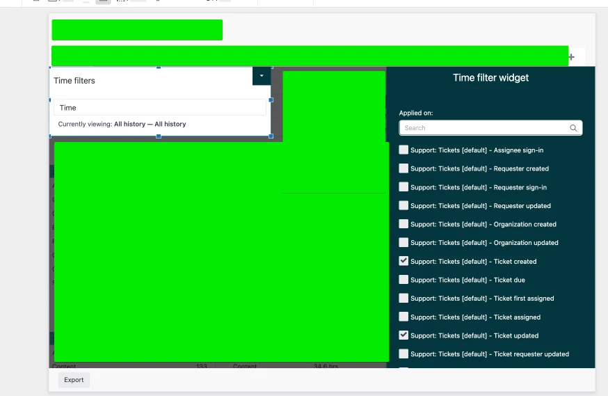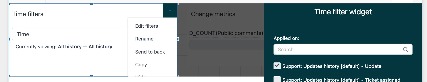 I feel like this is straightforward but I'm having trouble with the time filter data set. I'm looking to see how many updates were made on a specific date or time span regardless of ticket created date. But instead I'm only receiving a count of updates for tickets that were created on my selected date(s).