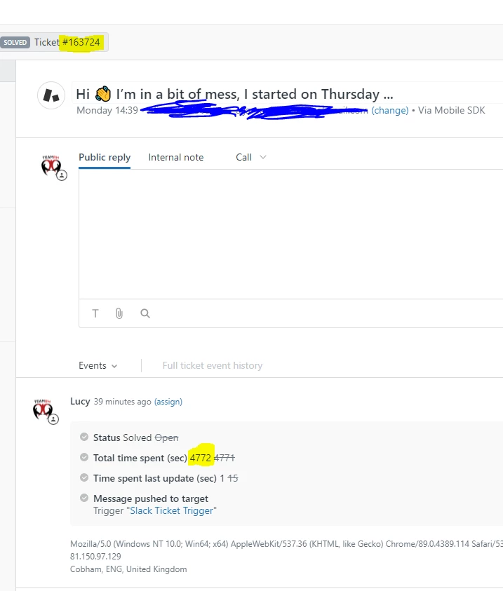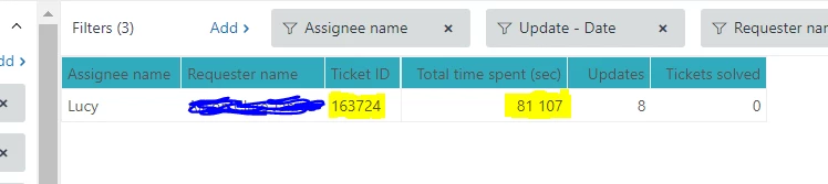 Can anyone elaborate on why the ticket here (#163724) shows 4,772 seconds spent on it (which is fairly accurate), but my explore query shows 81,107 seconds, please? It's driving me insane.