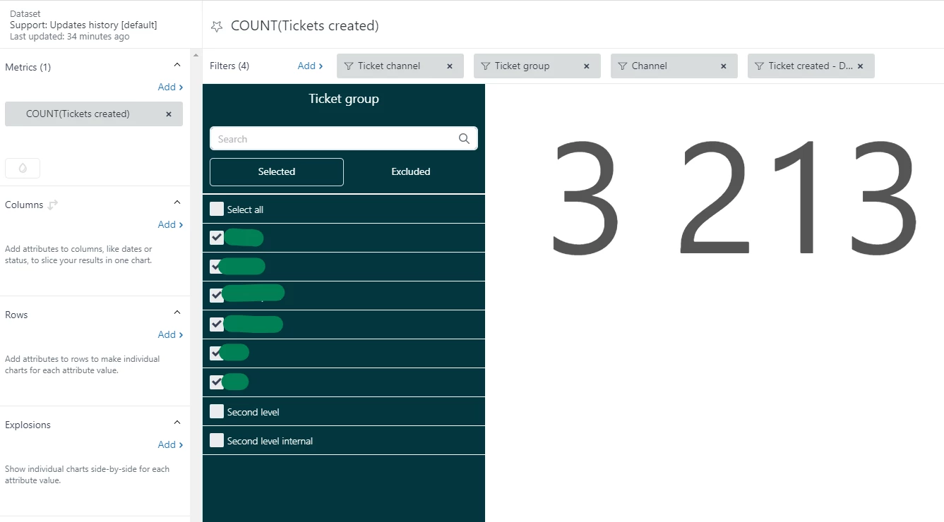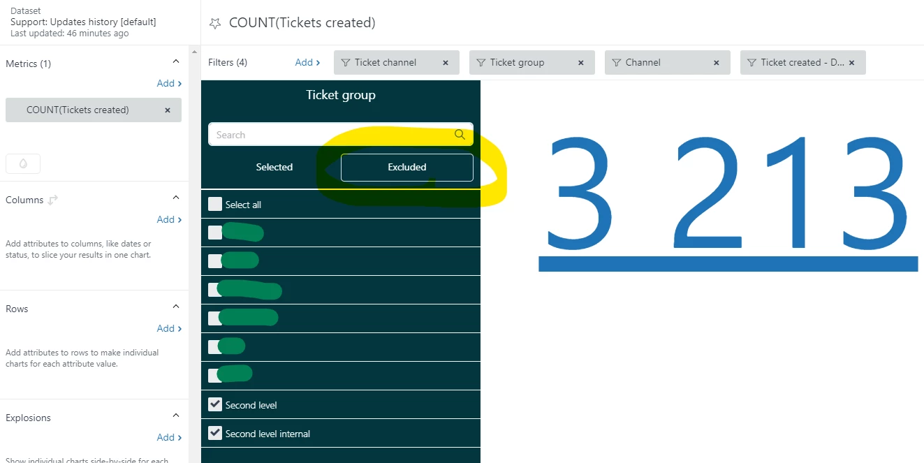 that are, in this case, the ticket that are assignee to the "Second level" group and i don't want to show in the result of the query and don't want to show in the result of the dashboard..