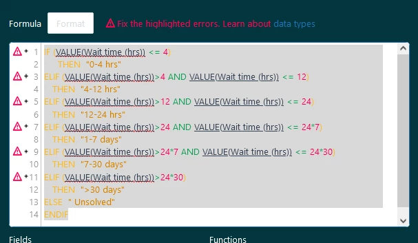 IF (VALUE(First reply time - Business hours (hrs)) < 10)