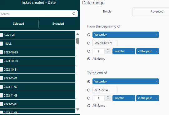 I should get count of tickets as pe below ticket creation date and dashboard should be static for one day i.e. 24 hrs. so I can do analysis by drilling into the data and provide summary on it.