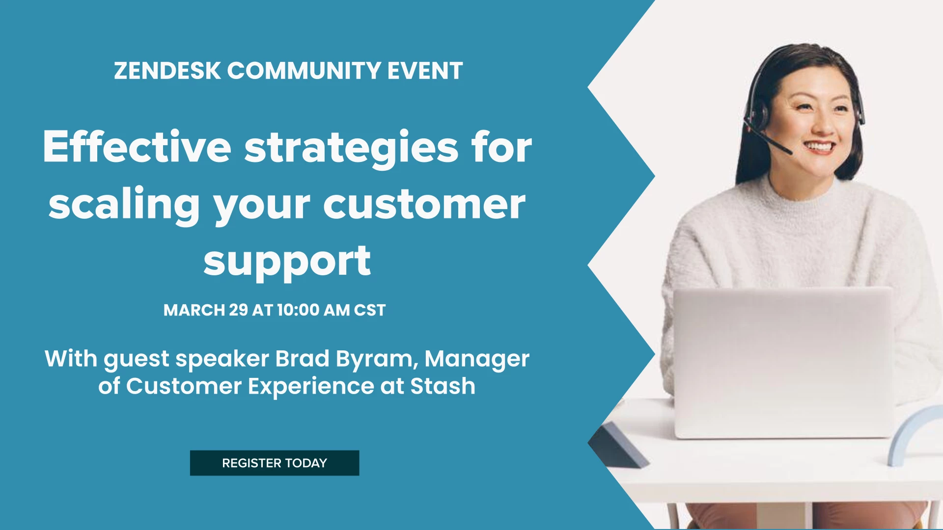 Brad Byram, Manager of Customer Experience at Stash, will share how he has set his team up for success using Zendesk so they can effectively adapt in times of constant change by focusing on what matters most. Regardless of your industry, you will benefit from Brad's advice and walk away with helpful tips and tricks. Join us on Wednesday, March 29th at 10am CDT to learn from Brad’s experiences.