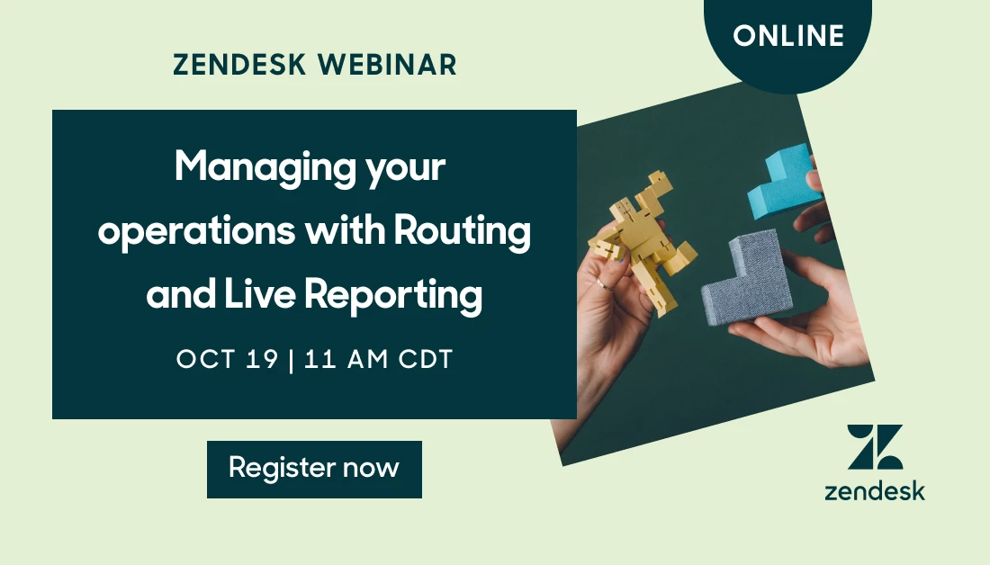 Join us on Wednesday, October 19th at 11 AM CDT, as we take a deeper look into the new and advanced Routing and Live Agent Reporting capabilities. We’ll sit down with some of our experts as they take you through all of the benefits of these new features, while breaking down the ways that they intertwine with other Zendesk routing capabilities. Stick around after the main event for a live Q&A, where members from our Zendesk Product team will be ready to answer all of your questions! Click here for more details, and register now to secure your spot: https://bit.ly/3em3Y6q See you there! |