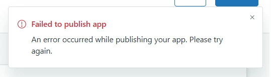 However, I am now facing an issue when trying to publish a new app. When trying to do so, I get this message in the App Builder: