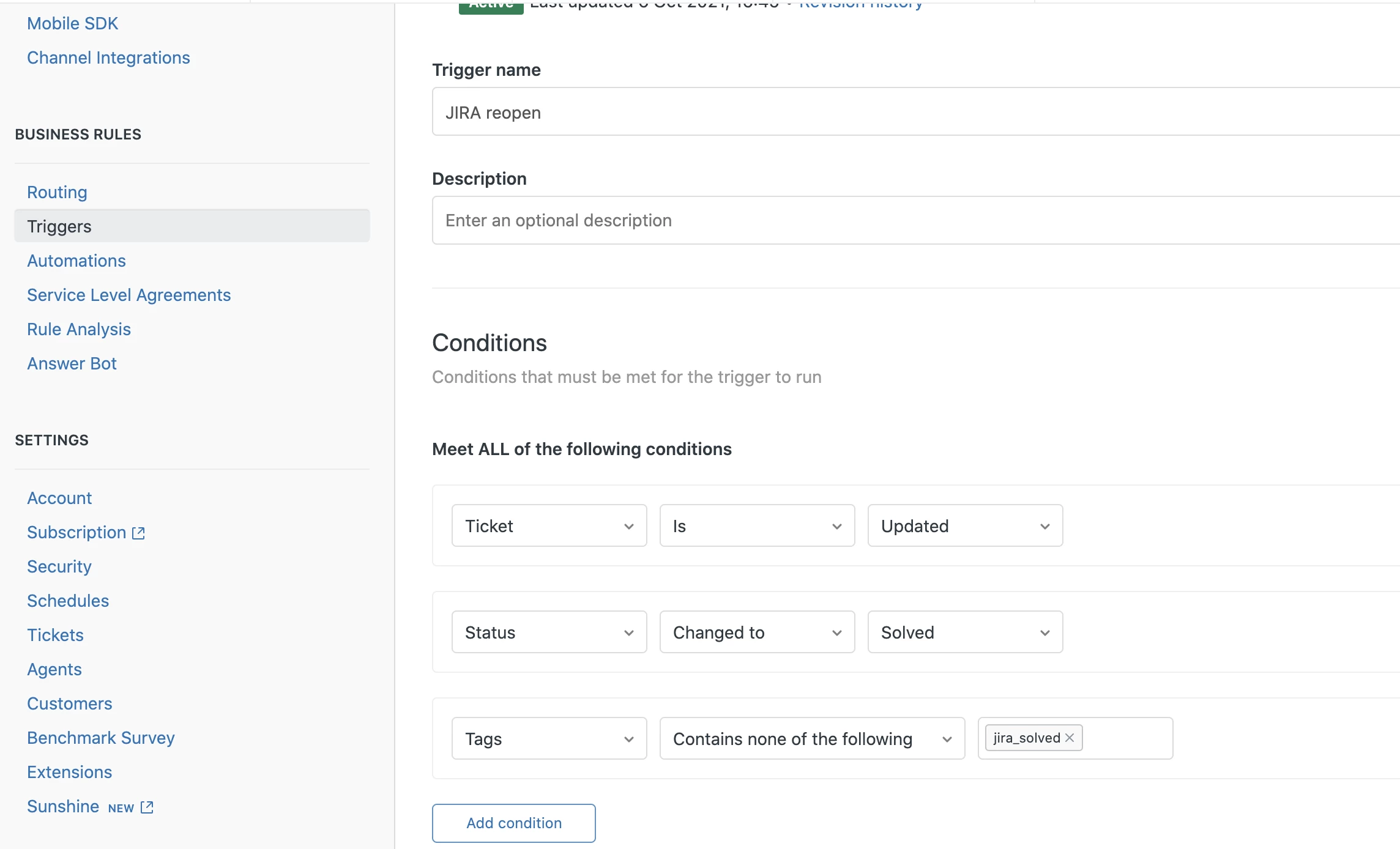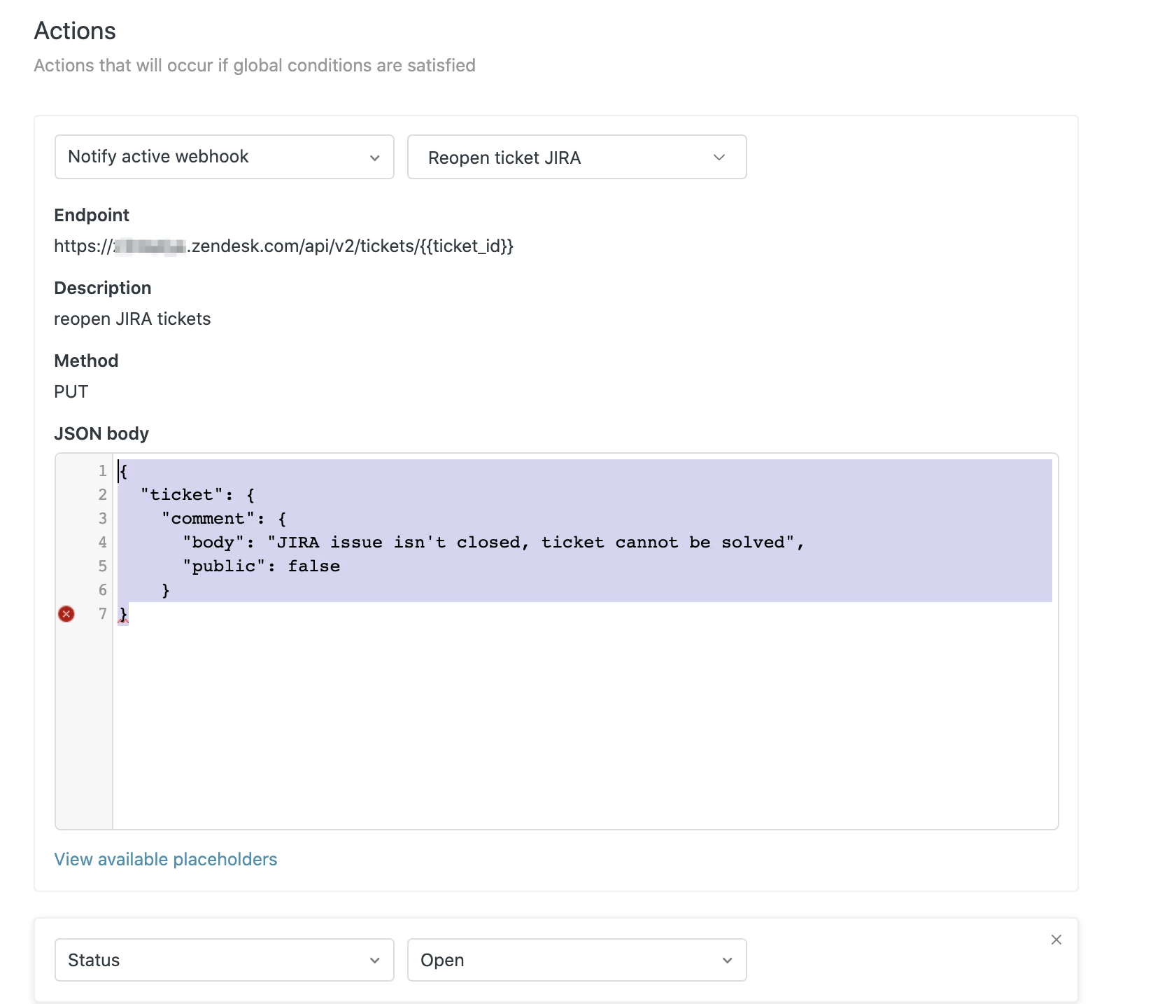 Is there any way I can set up a rule where a Zendesk ticket cannot be solved if the JIRA status is not also closed?