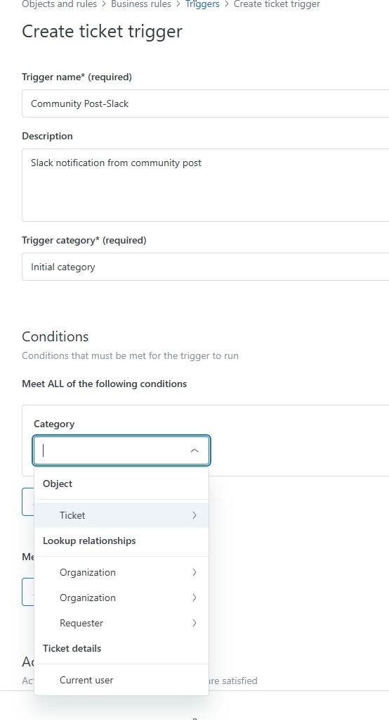 I am attempting to create a Zendesk Community Post Published event trigger that will then send a slack message to a private channel.