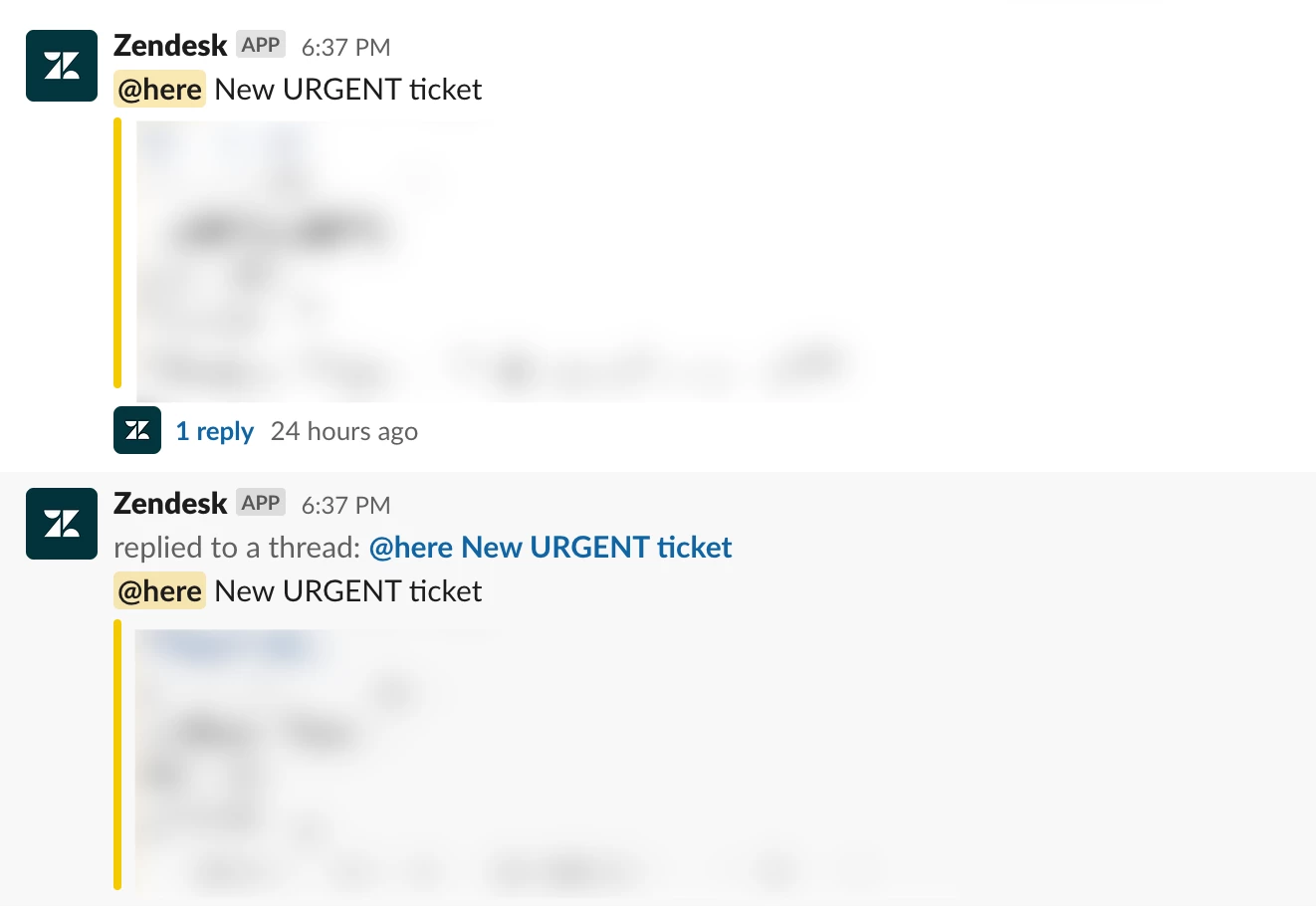 Somehow, the Zendesk app answers its own post and automatically checkmarks the option to send the reply to the channel again:
