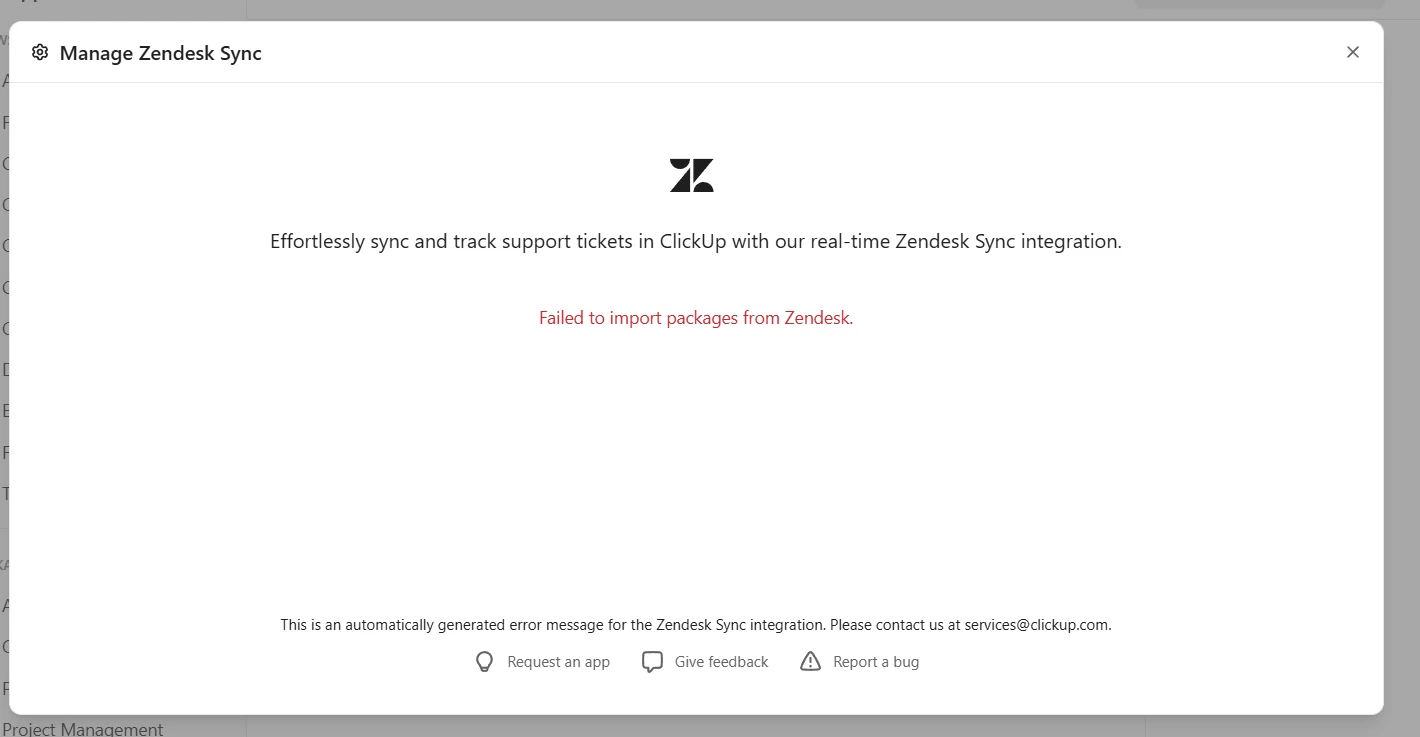 We attempt to enable Zendesk ClickUp sync and hit this road block where we are getting this message: