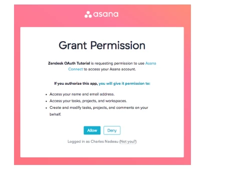 - In the tutorial for zendesk Auth Grant flow, The same Auth Grant page looks really different that is being used by an application ("Asana"). Is there a way I can similarly customize my Auth Grant page like this?