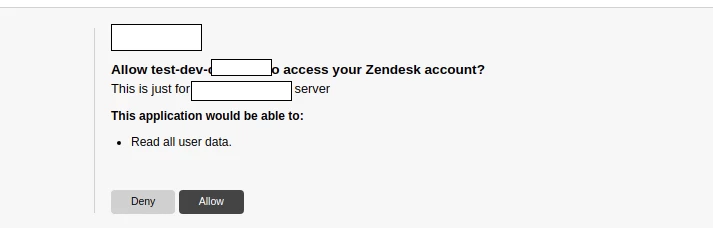 I'm working with the Authorization Grant flow from Zendesk to Authenticate users into my Custom Website. Once I authenticate them, a page to grant permissions appears, where users can Allow/Deny my webapp to access details from their Zendesk.