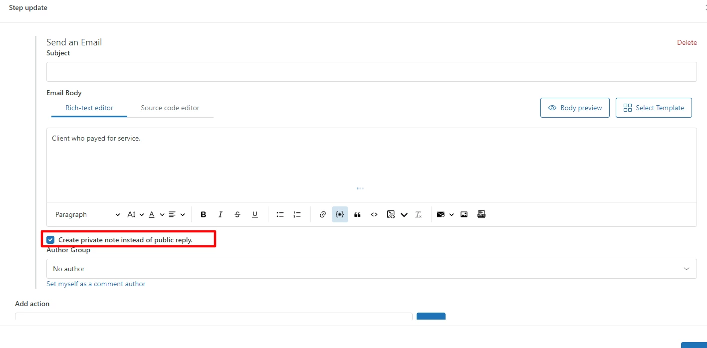 From what I can see, Triggers and Automations don't allow Comments (public or private) to be added to tickets.