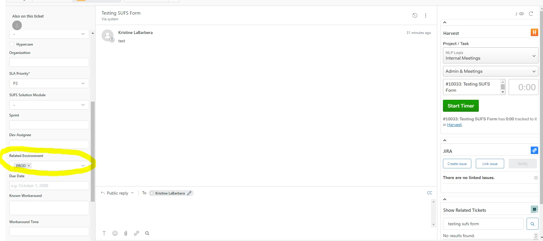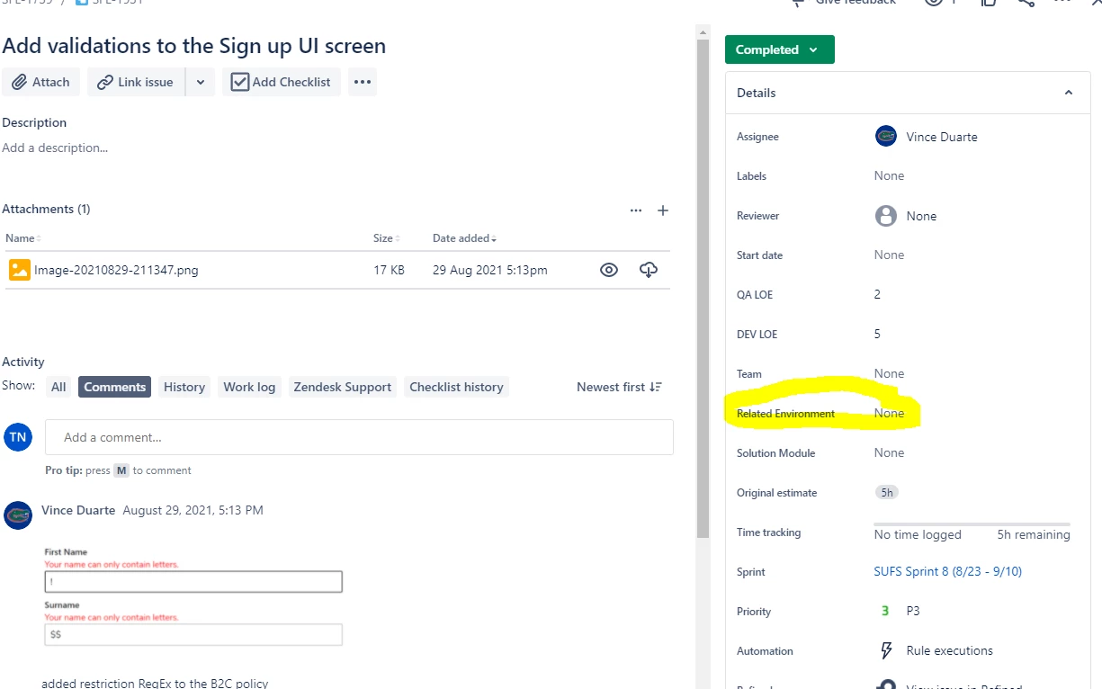 I have created a custom field 'Related Environment' in both Jira and Zendesk: